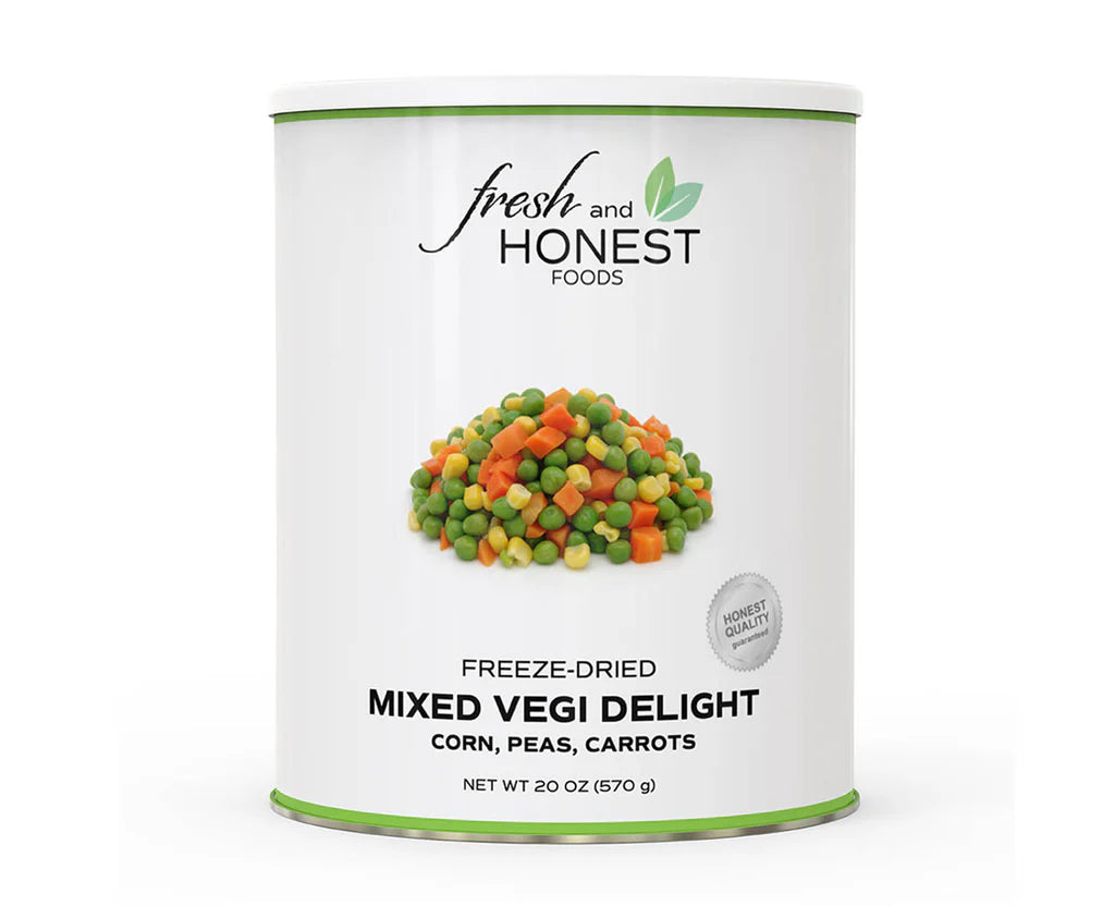 Freeze Dried Corn, Peas, Carrots all in one can for your convenience!